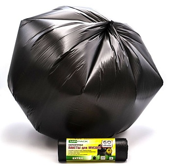 Мешки для мусора 60 литров, 12 мкм, ПНД, черные, в рулоне 20 шт, 60х70 см, особопрочные, MIRPACK
