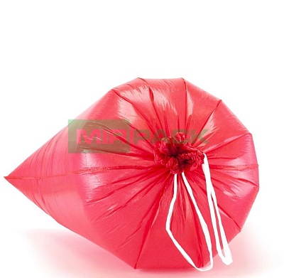 Мешки для мусора с завязками 35 л, 30 мкм, 10 штук, ПCД, красные, для тяжелого и острого мусора прямое дно + ленты для затягивания